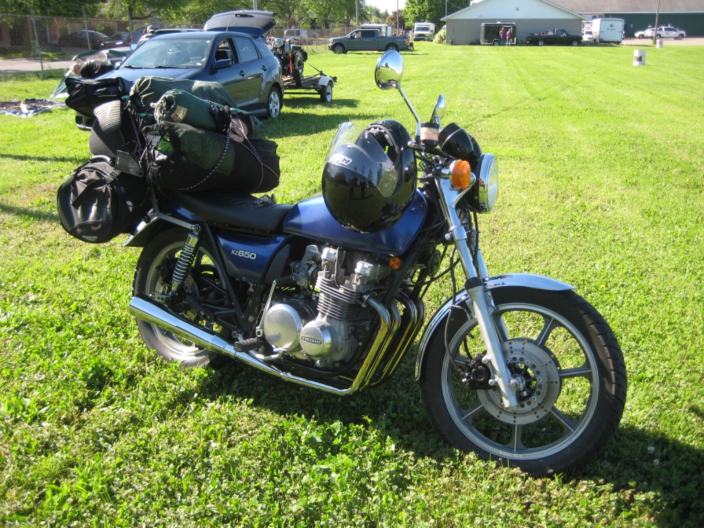 I ride to my Swap Meet every year I can. KZ650 with rear rack. The rear rack does not go beyond the rear fender so it does not add to the length.