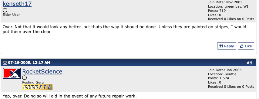 23 Mar 2023 18:40Thanks. I did more research. It seems back in the day they put them OVER the clear, so Im going to go over.