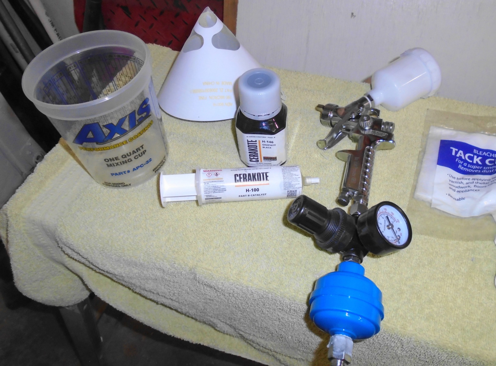 Stuff Worked Great! Had Heat in my small shop! Then baked in oven "The H" product!"H - 146 GRAPHITE BLACK" 2 part catalyst system.Small detail gun with .08 fluid nozzle.I'm a PRO!