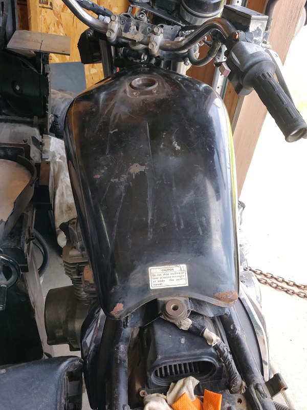 I picked up this 82 KZ1000 LTD tank for $75 shipped but it had a big ol dent that needed to be pulled out....about an inch.
