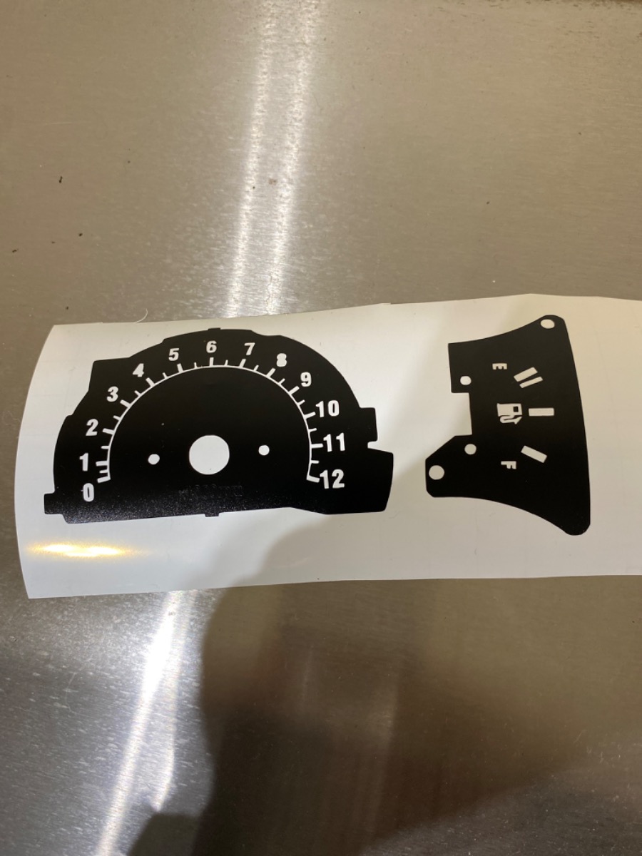 im getting some transparent lime green vinyl from Amazon. Probably red, too. So plastic gauge face backing (acrylic?), green/red, black from pics.