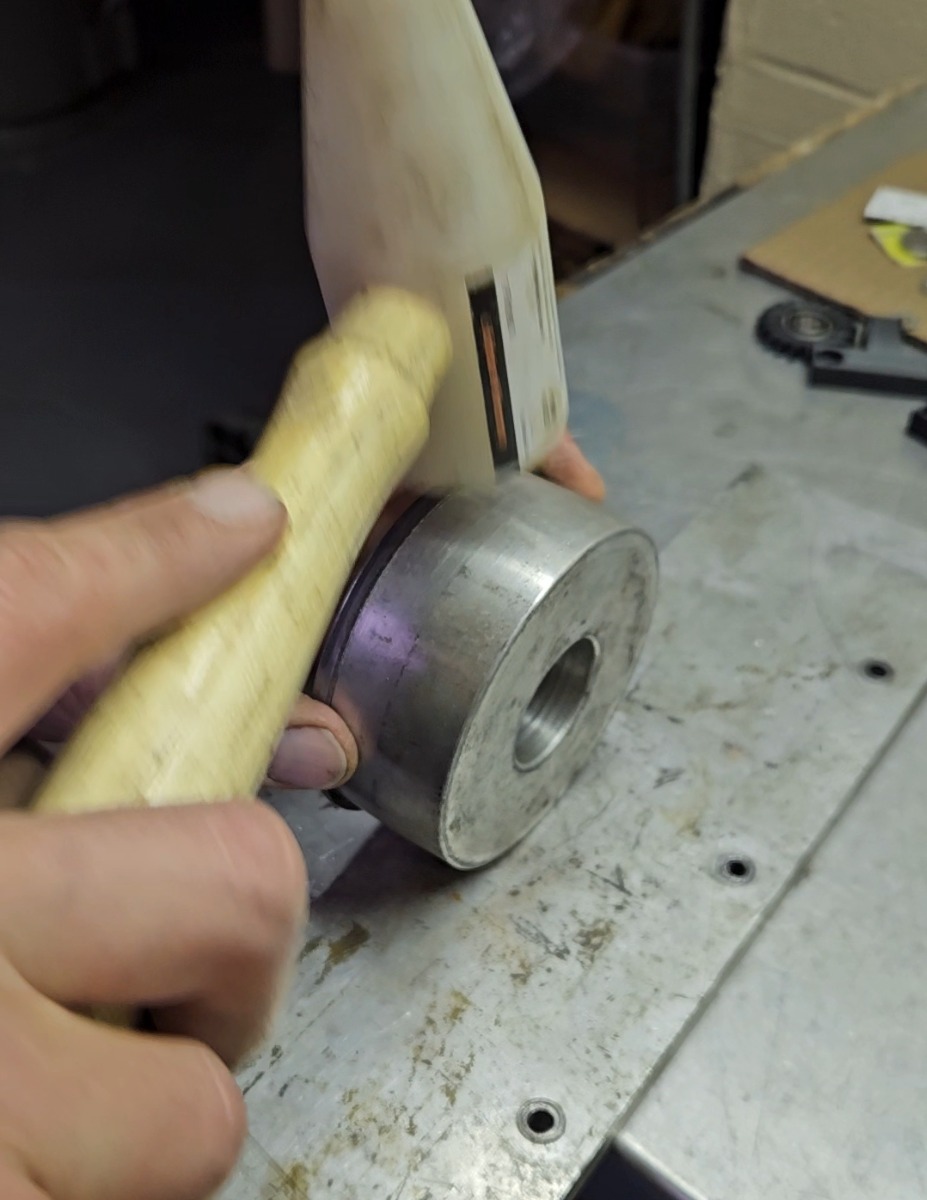 I used a 4" piece of aluminum round stock to work the crimp ring profile with a plastic mallet. Be careful not get carried away. Stay away from the 90° radius that contacts the speedo front half. Make sure that stays pretty!