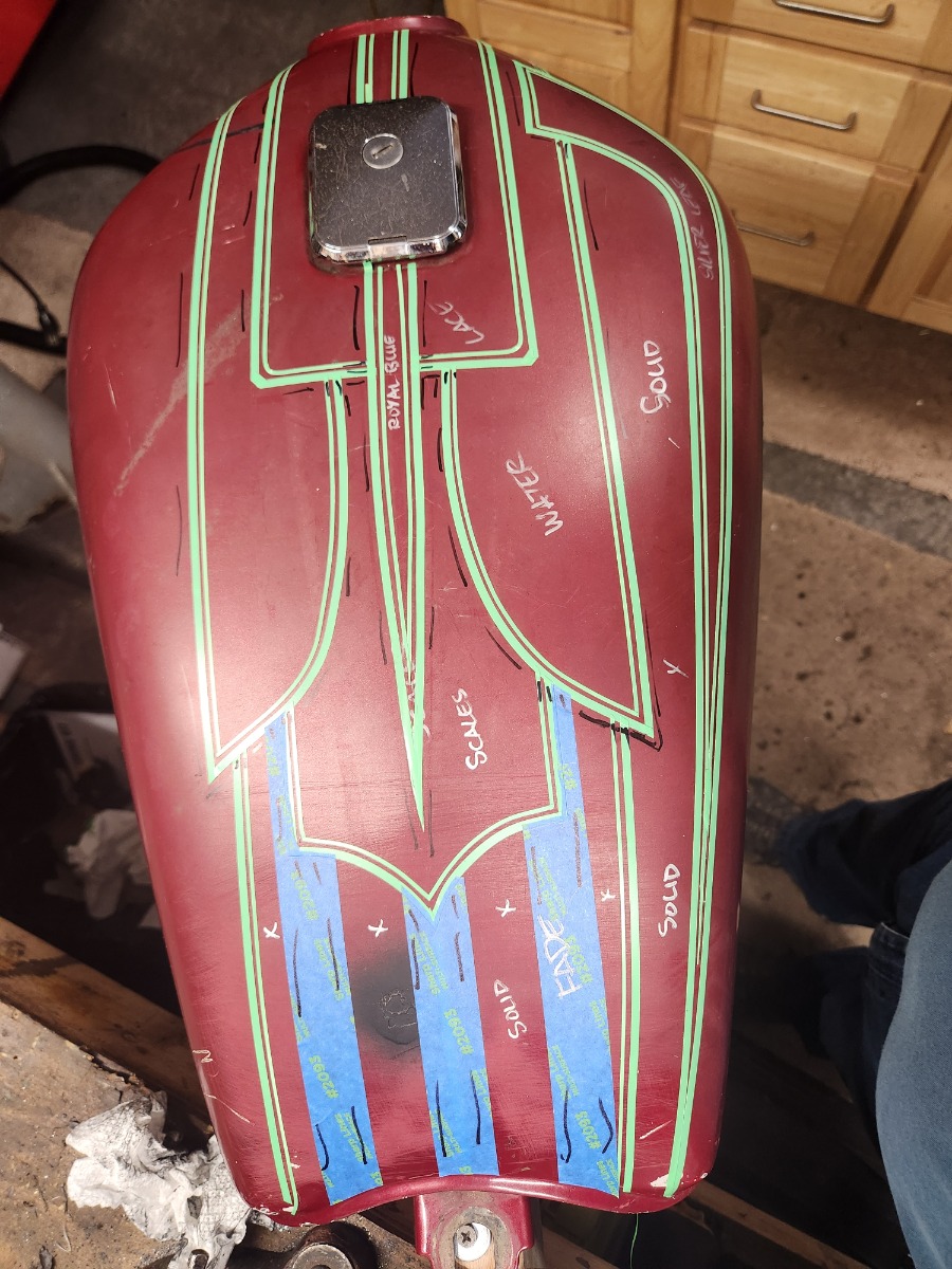 I did a practice lay-out on my tank to figure out what goes where. If I can pull this off this summer