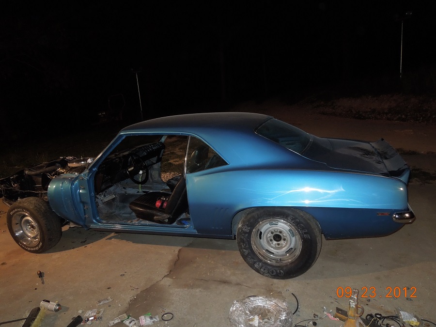I got it as a stalled restoration. the blue had been sprayed but not the stripes. I had to spray the stripes and assemble it. Since it was apart it was easy to make a few "upgrades". The changes lower its value but increase the fun factor ten fold. I did a little to the suspension too. Guldstrand drop, IROC steering box, aftermarket four wheel discs, bigger sway bar, frame connectors.... It would not be too difficult to go back to stock but after I'm gone someone else can worry about that.