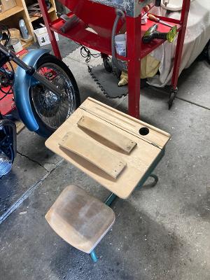 Started sanding an old school desk, found at the curb on garbage night, Just bought a matching ink well on ebay.