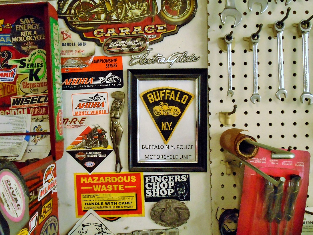 I scored the last Item for my original HD 75 FLH. "I got a guy!" found this old Buffalo Police Bike front bat wing up in the cat walks at the city garage. What a Score for me!