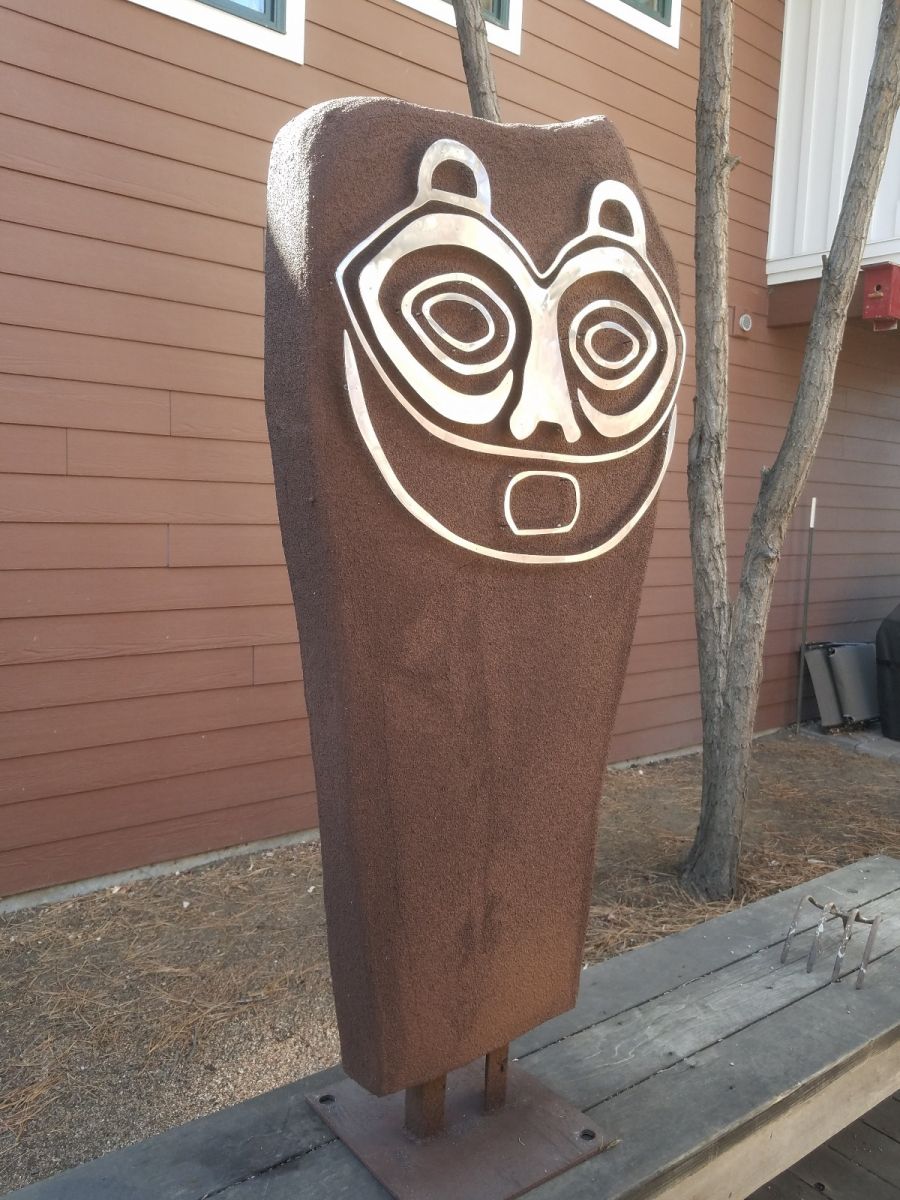 As some of you know I get satisfaction out of welding up large sculptures 5' to 7' tall with which I try to recreate pre-historic cave paintings and petroglyphs. This time I added in some synthetic stucco to try to imitate the stone the petroglyphs are carved into.