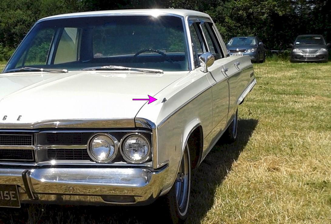 There are these little chrome guards on the front fenders that have small light bulbs inside them that blink with the turn signals so the driver could see the turn signals were active. They were very neat and somehow always worked even after 15 years.