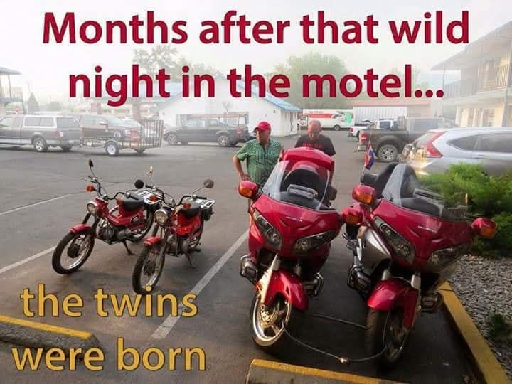 "Still in the ditch with the motorbike, I guess."