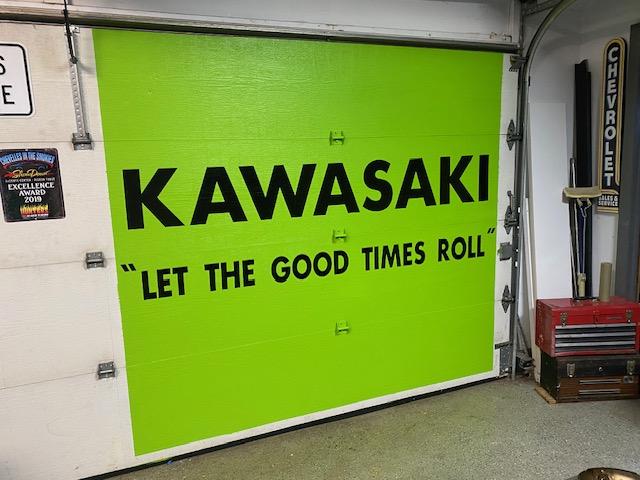 Thought I would post a pic of garage art I put on back of my 2 car garage door. It involved painting the door first and installing a vinyl sticker / lettering.