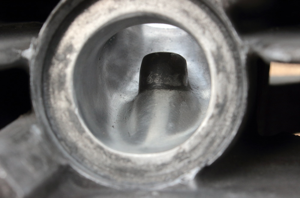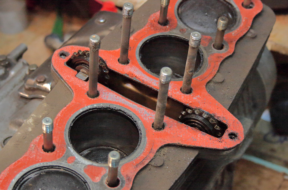 But later I changed my mind and bought KZ750 cylinder (1980, suitable with roller cam chain and its tension system as it has larger valves and wider channels.