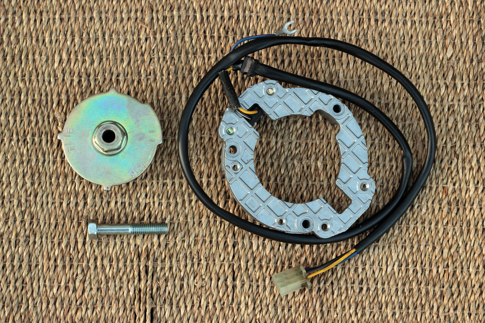 I have had enough of contact ignition maintaining and adjusting in the beginning of my motorcycle life some 15-20 years ago. Thus, I had no slightest intention to leave original contact ignition system in Kawasaki KZ650 cafe-racer project, nor I was fond of its old wiring and electrical components. The solution for replacement of KZ650 contact ignition is quite known: to use ignition picker, rotor and igniter unit from late air cooled inline four Kawasaki 750. My choice of model was obvious: I just bought Zephyr 750 ignition picker, rotor and complete wiring with all units included. Wiring was declared to be removed from bike with only 15K km on it and looked like new.
