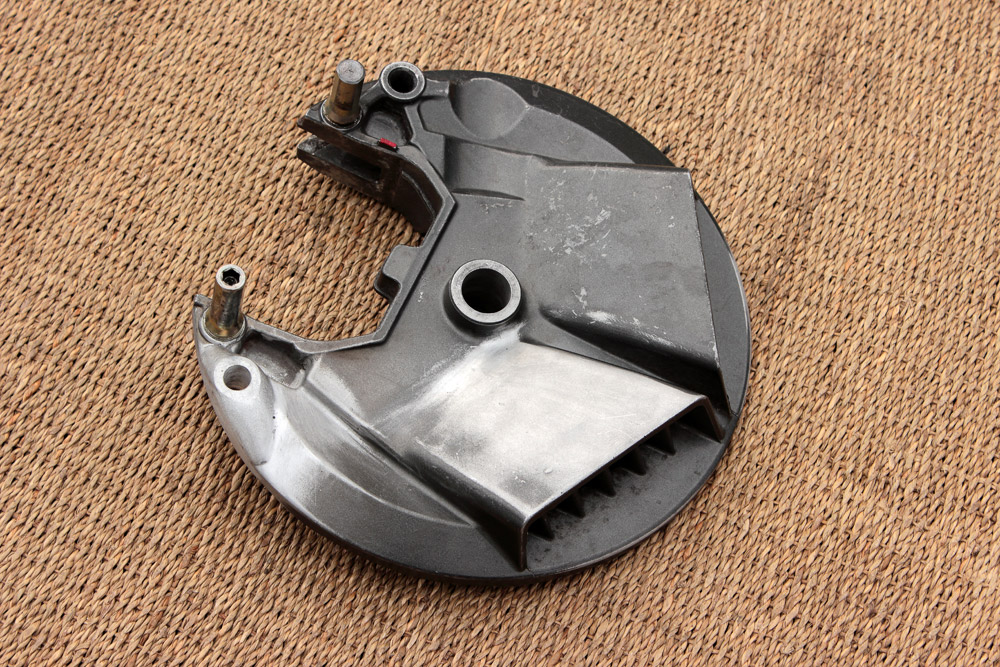 This time using of swingarm with eccentric chain adjusters made things a bit more complicated, as Honda CBX550 rear wheel is designed for swingarms with linear adjusters And what is most significant, in case of CBX550 wheel the very brake shield works as brake caliper bracket, thus it couldn’t be replaced with any other bracket.