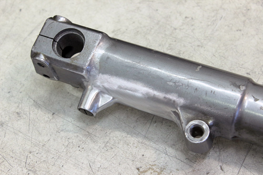 First, I cut lower brake calipers’ mount from outer fork tunes and grinded their surface to make a look that there never were any mounts.