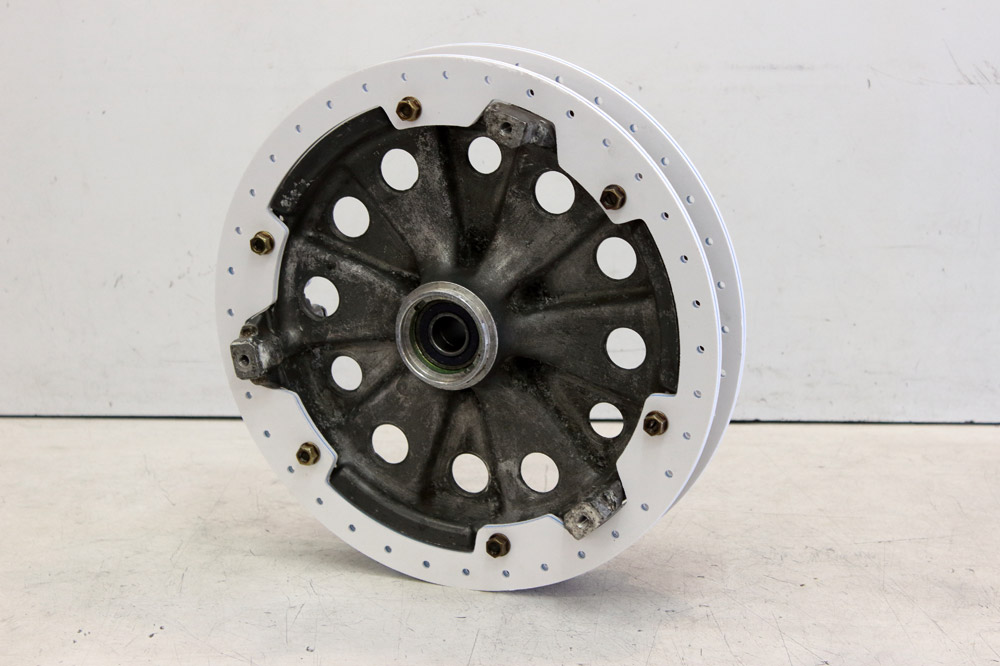What I really don’t like in CBX550 wheel is brake boards’ asymmetry. As you may see on photo below, right and left boards have quite different configuration because left board was mounted to fork anti dive drive.