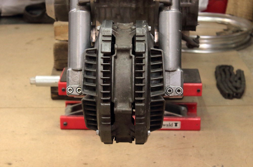 Honda manufactured bikes with “inboard ventilated disc” brake systems of few different configurations until the end of 1980s when they gave up their position to classic brake disc systems. The most impressive representative of motorcycles with “inboard ventilated disc” brake system was CBX550. It has this system for both, front and rear brakes and moreover, there are two brake discs in front. Thus, both its wheels looked like direct descendant of 1960s-1970s Moto GP brakes, if we discard the fact that they were not spoked, but Comstar wheels. Sure, once I noticed CBX550 wheels I couldn’t help but thinking about using them in Kawasaki KZ650 project.