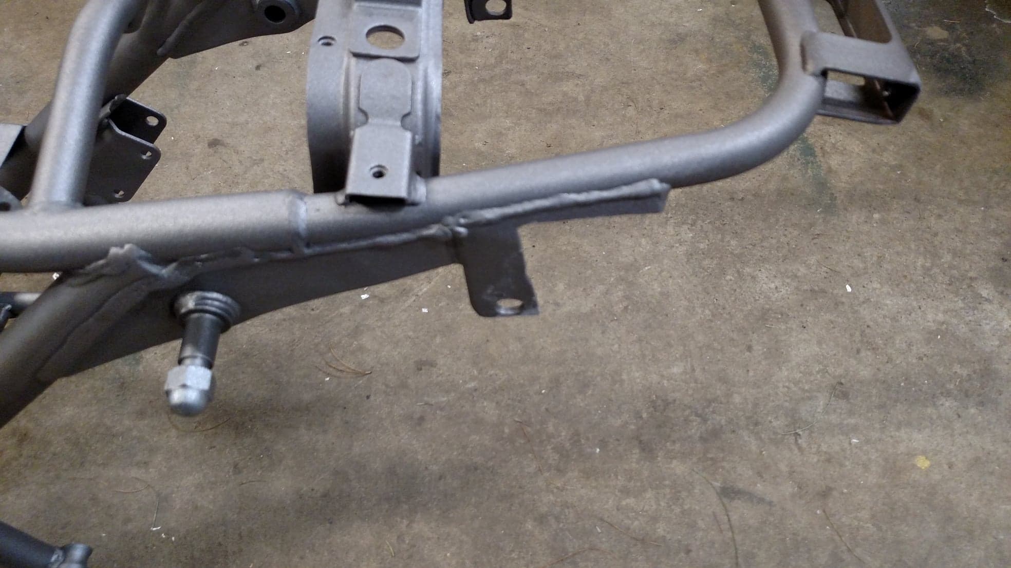 Motor is getting powder coated black, hoping this will be on the ground running before end of month. I got the frame back today from blasting, start adding gussets and trimming off unnecessary tabs and brackets. Someone had cut the rear turnsignal mounts off, if any one has a bad chassis that they could cut the tail off of, I'd be interested in it.